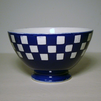 Title (ebay affiliate link): Vintage French Choisy le Roi CAFE AU LAIT Bowl Cobalt Blue Checkered Pattern