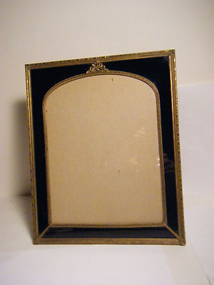 ANTIQUE ART DECO BLACK PAINTED GLASS & BRASS PICTURE FRAME