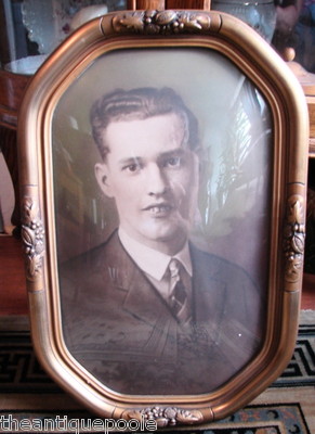 Title (ebay affiliate link): Early 1900's Gold Gilt Gesso Dome Bubble Glass Picture Frame Melon Berry & Leaf