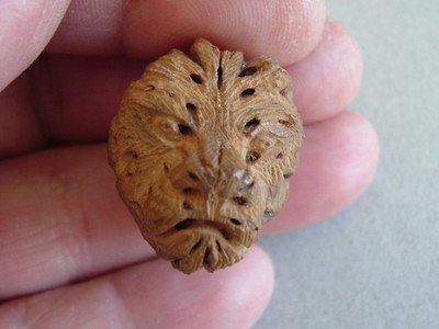 CARVED PITT OR NUT/ WONDERFUL LION OR LEOPARD HEAD