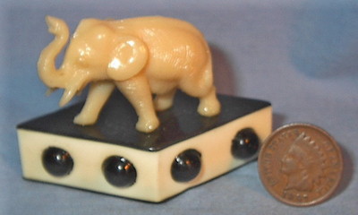 Title (ebay affiliate link): VINTAGE ANTIQUE CELULOID ELEPHANT ON DIAMOND SHAPED BASE MADE in JAPAN