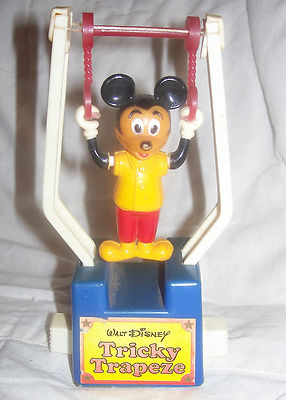 Title (ebay affiliate link): Mickey Mouse Tricky Trapeze push slots in and he flips around by Walt Disney