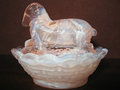 pink rose milk white slag glass Lamb Sheep / salt cellar celt on nest basket dip