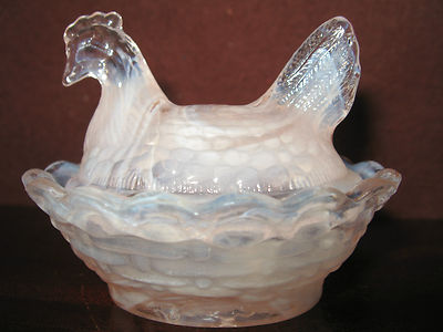 Title (ebay affiliate link): pink and milk slag glass salt celt hen chicken on nest basket dish rooster white