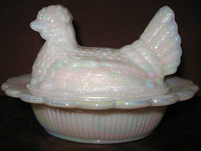 Title (ebay affiliate link): Pink milk carnival glass hen chicken on nest basket dish rooster crown tuscan 6"