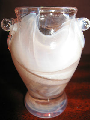 Title (ebay affiliate link): Pink milk slag glass tabletop toothpick match holder vase urn pattern white boyd
