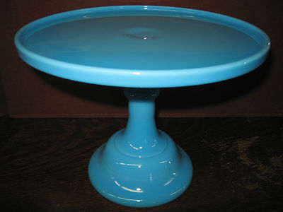 Title (ebay affiliate link): Blue milk Glass cake serving stand / plate platter pedestal raised tray cupcake