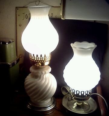 Title (ebay affiliate link): NR! $$ Coordinating Antique milk glass/brass lantern lamps. Vintage mid-century