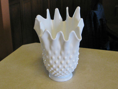 Title (ebay affiliate link): VINTAGE FENTON HOBNAIL FLUTED SCALLOPED RIMMED VASE WHITE MILK GLASS *NICE*