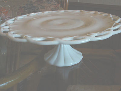 Title (ebay affiliate link): Vintage L.E. Smith 14" Milk Glass Pedestal Cake Stand with Lattice Work on Edges