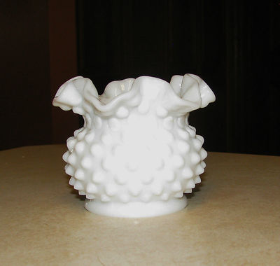Title (ebay affiliate link): VINTAGE FENTON HOBNAIL BOWL VASE PLANTER CRIMPED RUFFLED RIM WHITE MILK GLASS