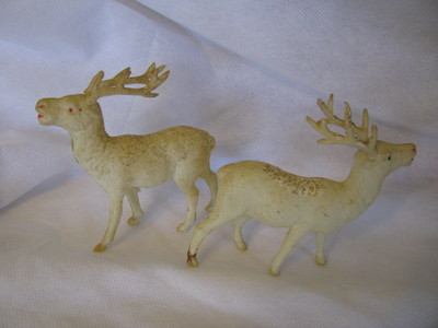 VINTAGE CELLULOID REINDEERS (2) MADE IN OCCUPIED JAPAN CIRCA 1940'S