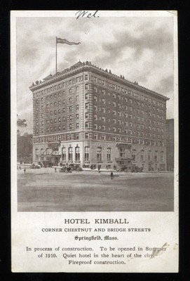Title (ebay affiliate link): 1910, THE HOTEL KIMBALL SPFD. MASS, FROM WALLACE CARNEGIE TO HIS WIFE. POSTCARD