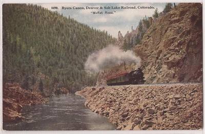 Title (ebay affiliate link): Byers Canyon Colorado Postcard Denver & Salt Lake Railroad RR Steam Train 1910s