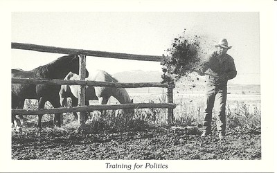 Title (ebay affiliate link): MODERN COMIC RPPC - "TRAINING FOR POLITICS" (HORSES, COWBOY & BS) MONTANA