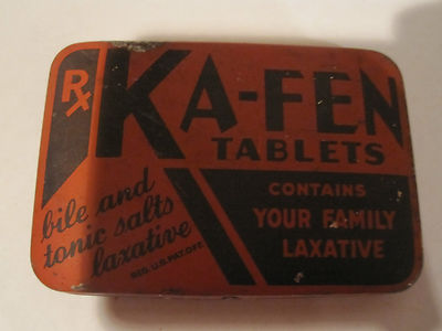 Title (ebay affiliate link): Antique KA-FEN 24 Tablet Laxative Tin Container Collectible Medicine Pharmacy