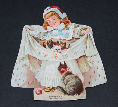 Title (ebay affiliate link): Mc Laughlin's Coffee Advertising Paper Doll. Girl reveals Litter of Kittes