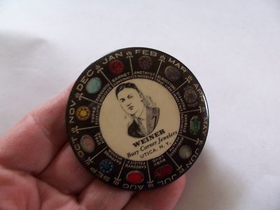 Weiner Jewelers Store Utica NY Celluloid Advertising Pocket Mirror Birthstones