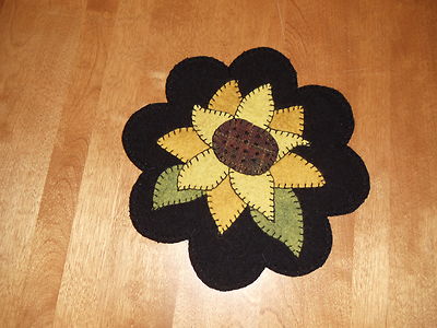 Title (ebay affiliate link): ~*~ Prim Folk Art Sunflower Wool Penny Rug Candle Mat ~ C&PLG ~*~