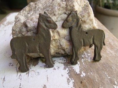 Title (ebay affiliate link): 2 Small Antique Solid Bronze Horses Hand Made Tack Decor? Western Americana