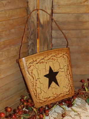 Title (ebay affiliate link): Primitive Wall Pocket Tan Crackle With Black Star & Pip Berries Country Decor