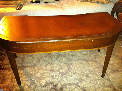 KITTINGER LEATHER TOP INLAID COFFEE TABLE 19 INCHES HIGH BRASS PLATE AND LABEL