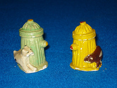 Vintage Green Yellow Fire Hydrant Plug Dog Lifting Leg Salt and Pepper Shakers
