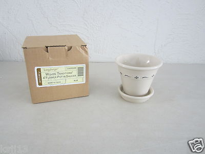 Longaberger 4" Flower Pot Classic Blue Pottery