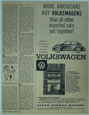 1956 Great New York City Memorabilia Fifth Avenue Motors Volkswagen Dealers Ad