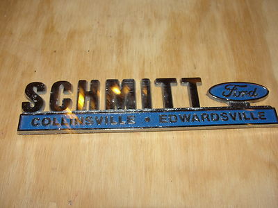 Vintage Schmitt Ford Collinsville Edwardsville Metal Car Dealer ID Add Tag 1960s