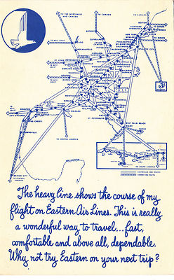 Title (ebay affiliate link): Eastern Air Lines Map of Eastern's "In Flight Routes of the Great Silver Fleet"