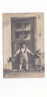 CHARMING CARD OF A LITTLE BOY WITH BUNCHES OF FLOWERS *E A SCHWERDTFEGER