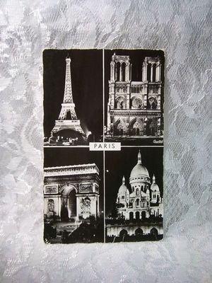 Title (ebay affiliate link): Vintage Postcard Eiffel Tower Notre Dame L'Arc de Triomphe Le Sacre-Coeur 1963