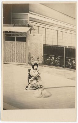 Japan geisha postcard Japanese woman in theatre