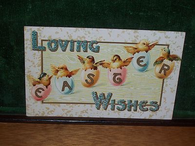 Title (ebay affiliate link): 1909 "SIX BABY CHICK'S FLAPPING WINGS INSIDE COLORED EASTER EGGSHELL'S!" LOOK!!!