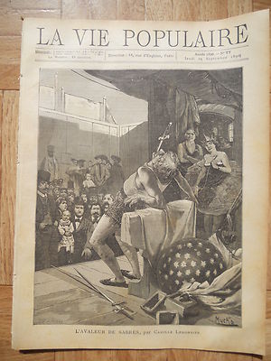 Old Print 1890 Art-Nouveau Cover Signed A. Mucha Circus Sword Swallower