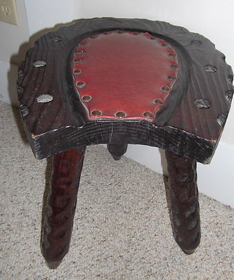 Title (ebay affiliate link): Vintage Spanish Equestrian Horseshoe Shaped 3 Leg Stool Made in Spain Western