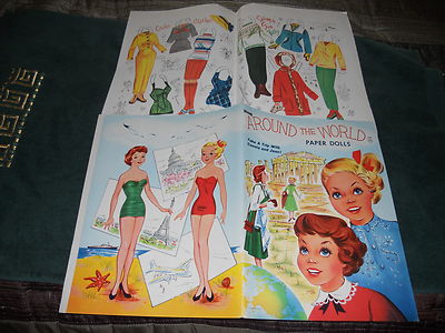 Title (ebay affiliate link): Around The World With Connie and Jean 1958 Uncut Saalfield Paper Doll Book