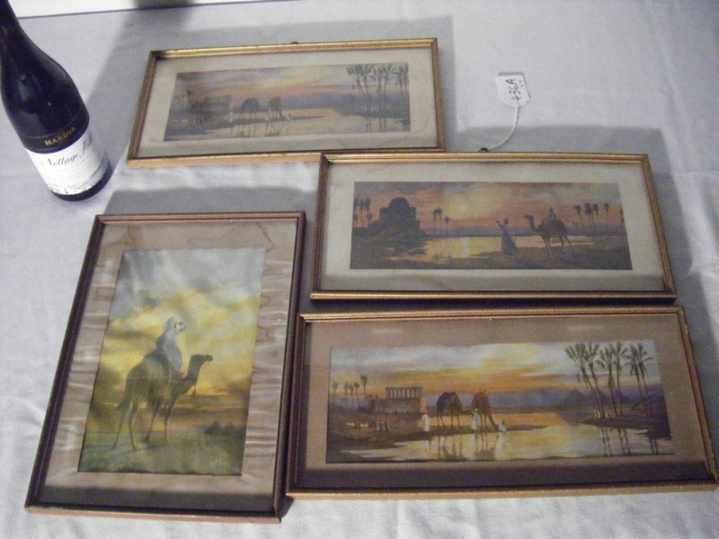 4 Classic Antique Egypt Nile Prints In Frames England c1920s