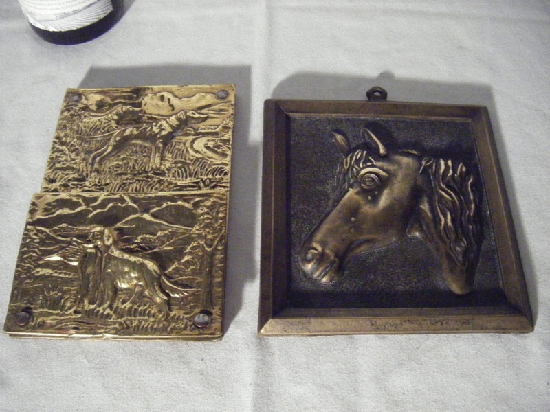 Very Fine Antique Bronze Horse Head Plaque & Brass Letter Holder