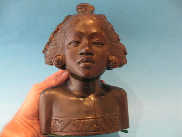 Vintage 1950s Balinese Carved Rosewood Wooden Figure Lady
