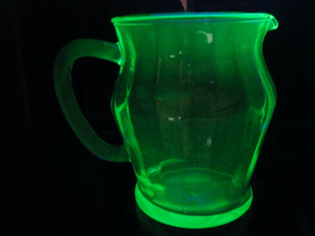 Vintage Art Deco Uranium Depression Green Glass Ribbed Jug 1930