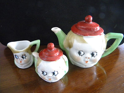 Japanese Kewpie Doll Style Novelty Procelain Childs Tea Set