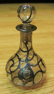 ANTIQUE GLASS SCENT PERFUME BOTTLE WITH GRAY SILVER OVERLAY
