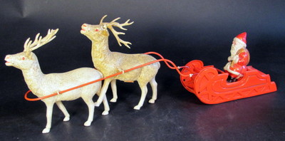 Vintage Japanese 1920s Celluloid Reindeer w Sleigh & Santa w Paper Labels