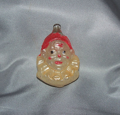 Title (ebay affiliate link): CLOWN Glass Ornament metal hanger on top from the 1930's era