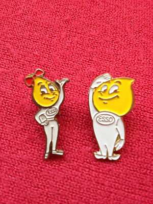 Title (ebay affiliate link): Esso Mr and Mrs Oil drip Badges 1960's 1970's