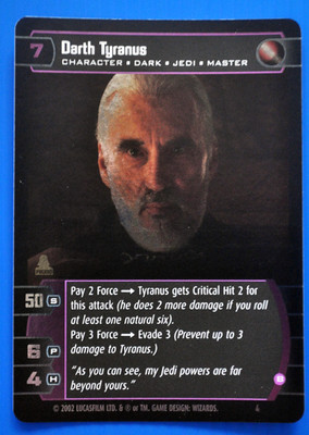 Title (ebay affiliate link): Star Wars TCG Darth Tyranus Holo Foil Promo Card #4B Wizards of the Coast WOTC