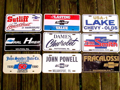Title (ebay affiliate link): 9 OLDER CHEVROLET DEALER ADVERTISING FRONT BUMPER LICENSE PLATES