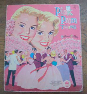 Title (ebay affiliate link): VTG PINK PROM TWINS PAPER DOLLS CLOTHES BOOK DANCE GOWNS DRESSES BOY 2 GIRLS TOY